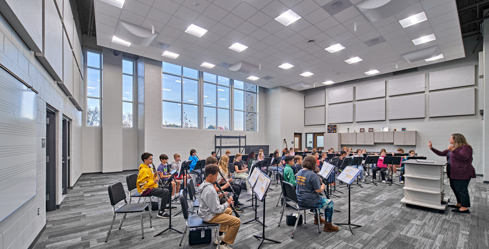 And to see even more of the new building, take a look through the photo gallery below! The school is 125,000 sf and holds 850 students, with room for future growth. Inside, there are innovative classroom spaces, a state-of-the-art science lab, STEM classrooms, breakout spaces for individualized learning, a full-size gym, and choir, band, and art rooms. In addition to the 21st-century learning spaces, there is also a focus on the safety and security of students with secure vestibules, access control, and surveillance cameras.